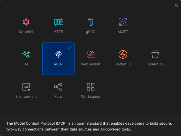我们能通过postman调试mcp。只需要创建新请求的时候选择mcp
