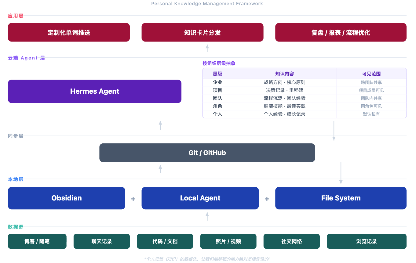 - 同步层: a. 负责将知识库,在各个终端中同步。简单做,目前我就是用github。